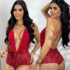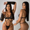 Body Arrastão com Strass Sensual Penélope C/ Meia Completo
