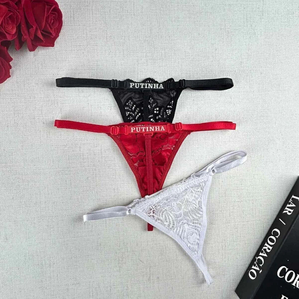 - Com renda Bordado na frente e escrita na parte de trás.