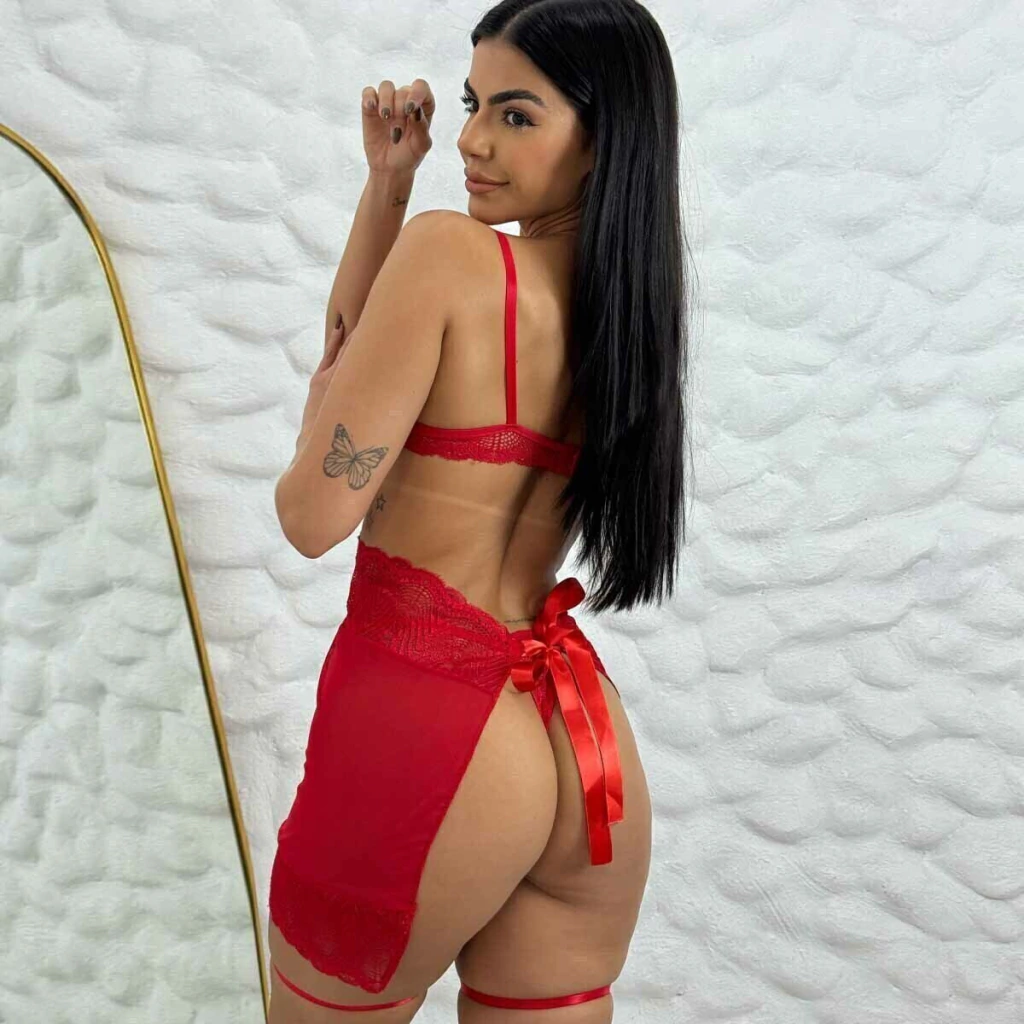 - Acompanha Camisola, Calcinha e Cinta Liga