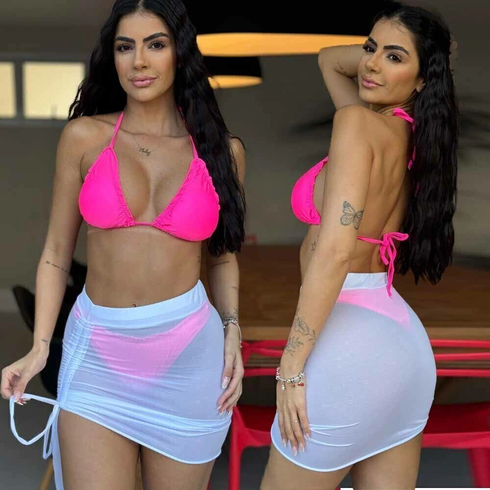 Saída de Praia Saia Franzida com Ajuste Puxe Blogueira