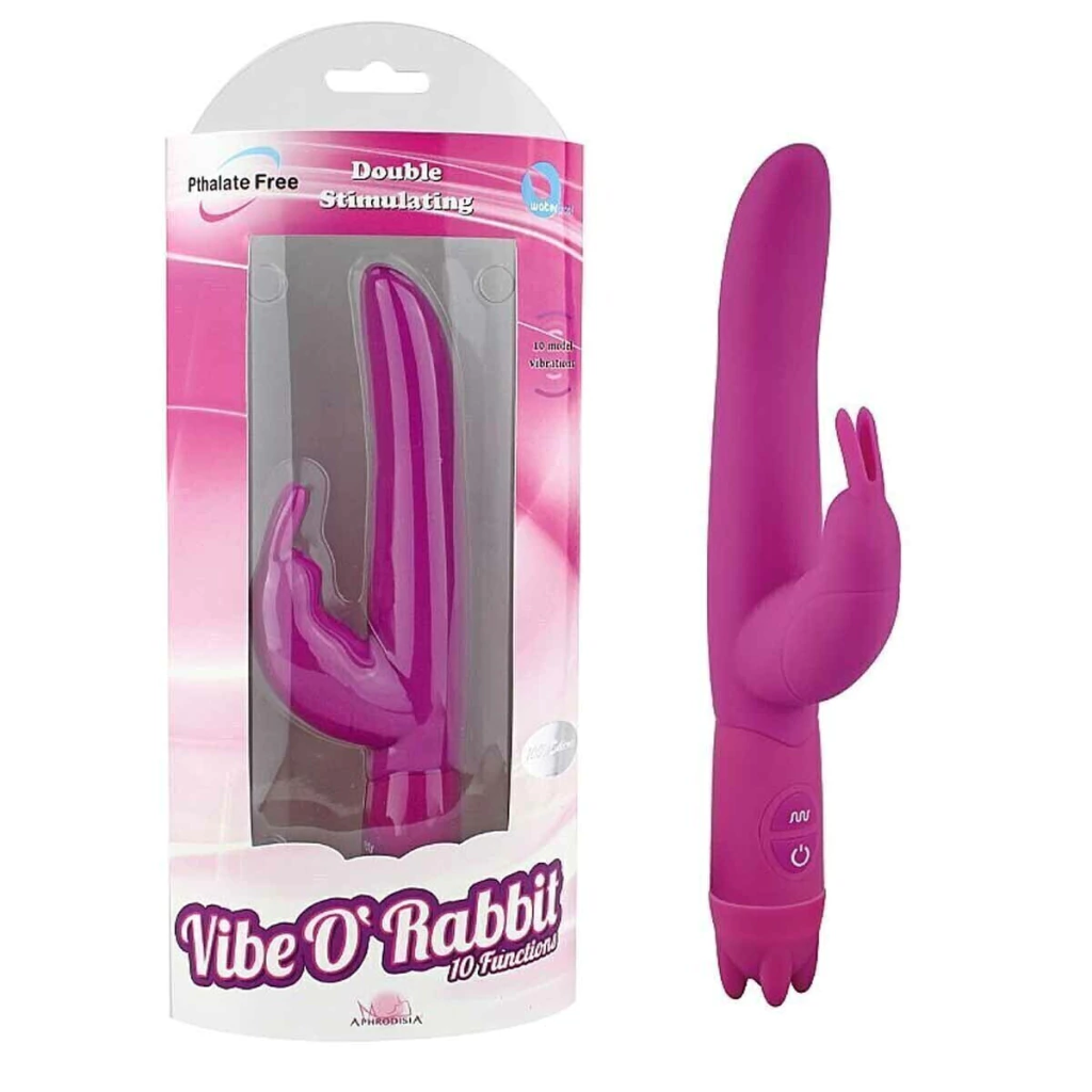 Vibrador, feito em silicone que confere um toque macio e aveludado e de fácil limpeza. Possui plug na lateral em formato de coelho, para a estimulação do clitóris.